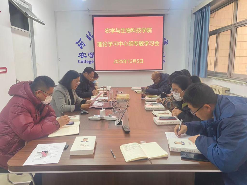 12月5日,农学与生物科技学院党委理论学习中心组召开专题会议,深入学习了《中国共产党思想政治工作条例》、《中共中央关于制定国民经济和社会发展第十五个五年规划的建议》等内容。学院党委书记领学,领导班子成员、党委委员及各支部书记参加了学习。