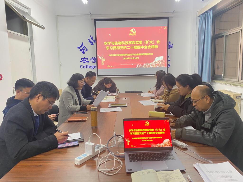 10月30日,农学与生物科技学院召开党委(扩大)会专题学习会议,深入学习领会党的二十届四中全会精神,研究部署学院贯彻落实举措,学院党委班子成员、各支部书记参加会议。